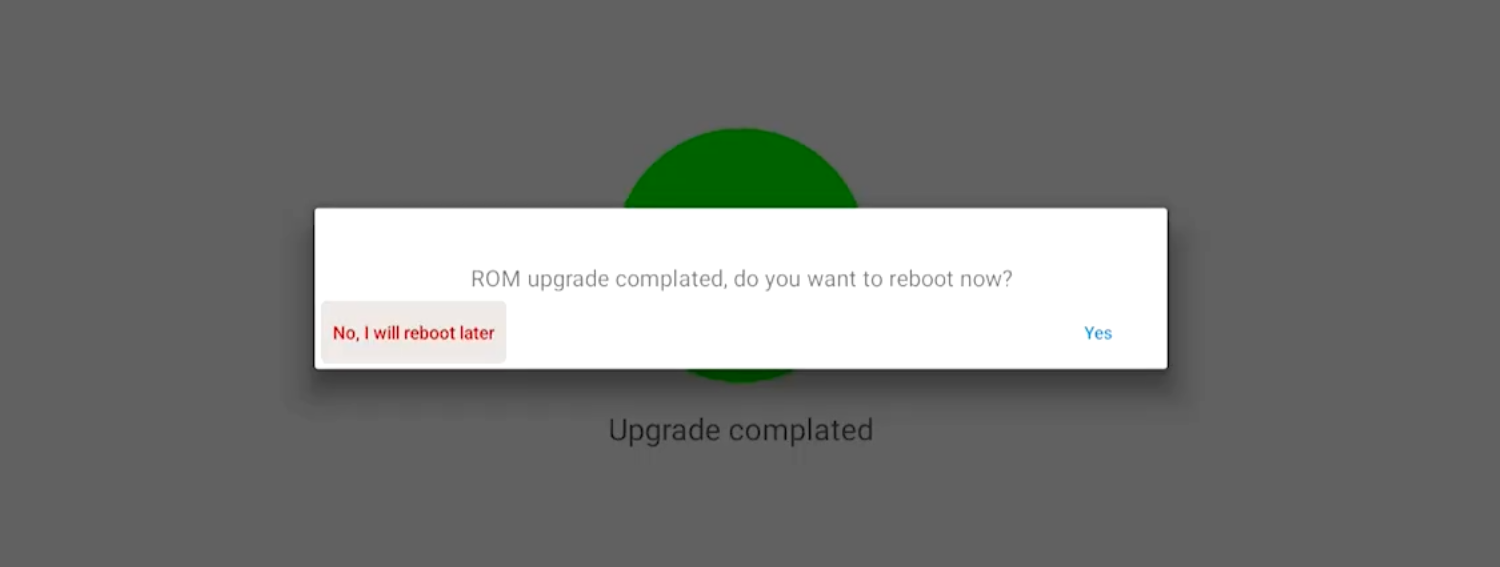 Once the progress bar completes, the system will prompt for a Reboot. Confirm to restart the box.